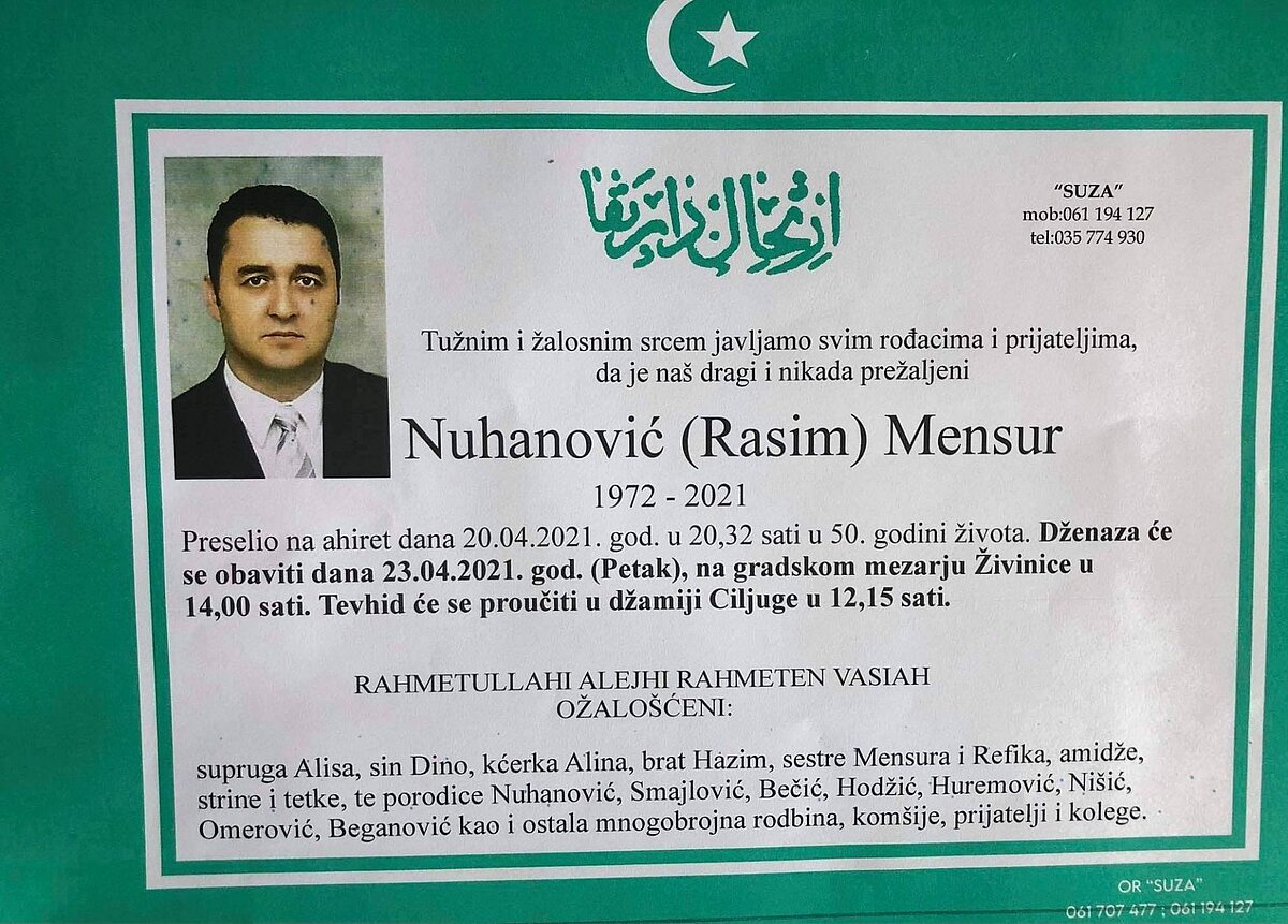 Ich lebe weiter, esse Datteln und trinke Tee und versuche das Loch, dass Covid-19 hinterlassen hat, zu verstehen. Mensur ist einer der vielen, zu vielen, Toten dieser Seuche und ich konnte nicht helfen und kann es auch nun nicht, außer dass ich über ihn schreibe, damit sein Tod nicht vergessen sei. Ruhe in Frieden, mein Freund, du wirst vermisst.