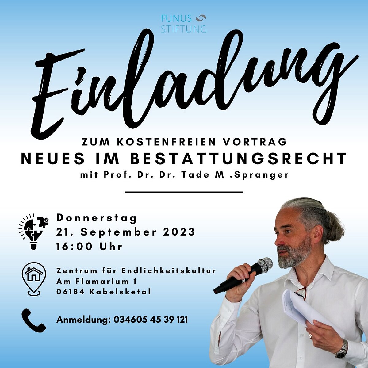 In seinem kostenfreien Vortrag im Zentrum für Endlichkeitskultur beleuchtet er aktuelle Entwicklungen und beantwortet Ihre Fragen dazu.